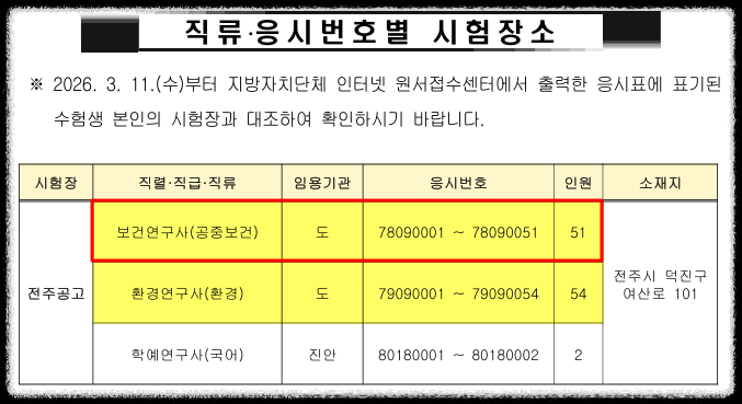 2026년 전북특별자치도 보건연구사 공무원 시험장소 / 경쟁률 [대방열림고시학원]