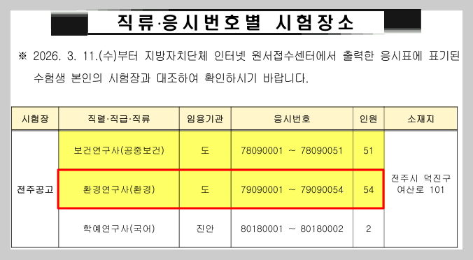 2026년 전북특별자치도 환경연구사 공무원 시험장소 / 경쟁률 [대방열림고시학원]