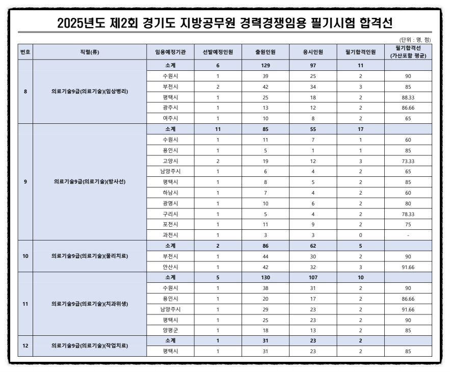 2026년 경기도 제2회 의료기술직 공무원 경력경쟁 시험의