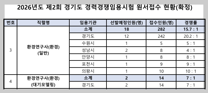 2026년도 제2회 경기도 환경연구사 공무원 원서접수 현황(확정 경쟁률) [대방열림고시학원]
