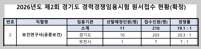 | 2026년도 제2회 경기도 의료기술직 공무원 원서접수 현황(확정 경쟁률) [대방열림고시학원] (0) | 2026.03.19 |