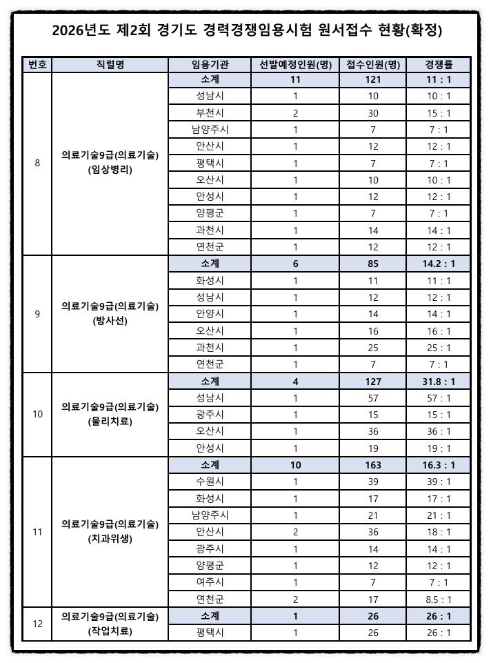 2026년 경기도 의료기술직 공무원 시험장소 / 경쟁률 [대방열림고시학원]