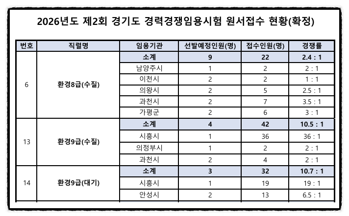 2026년 경기도 환경직 공무원 시험장소 / 경쟁률 [대방열림고시학원]