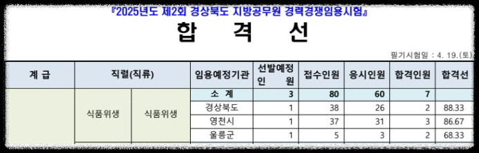 2026년 4월 25일 토요일 시행 예정인 경상북도 식품위생직공무원의