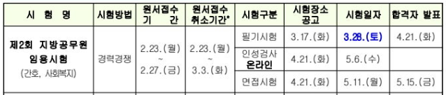 2026년 3월 28일 토요일 시행한 제주특별자치도 간호직 공무원의