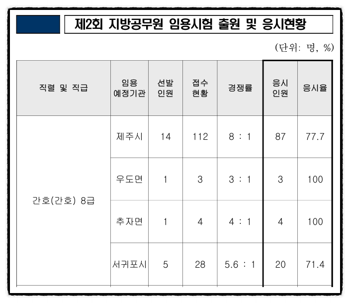 2026년도 제2회 제주특별자치도 간호직 공무원 필기시험 응시 현황(실경쟁률) [대방열림고시학원]