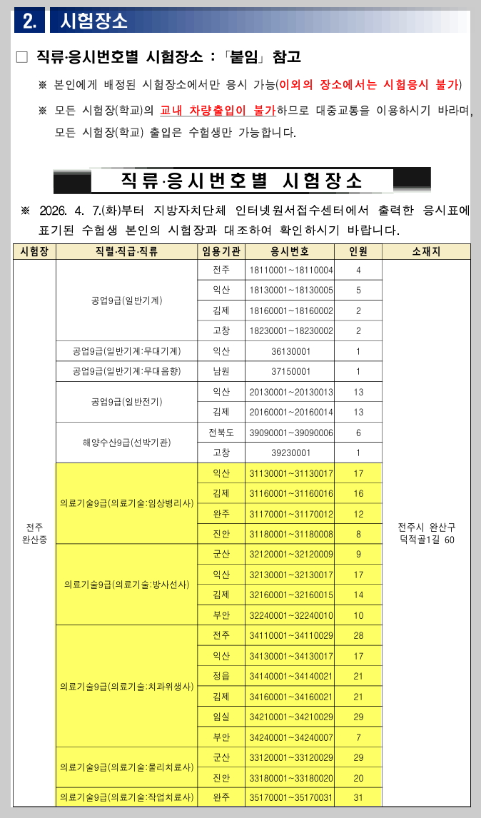 2026년 전북특별자치도 의료기술직 공무원 시험장소 / 경쟁률 [대방열림고시학원]