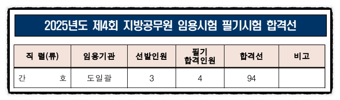 2025년 제주특별자치도 간호직 공무원 시험의 합격선은 위와 같습니다.