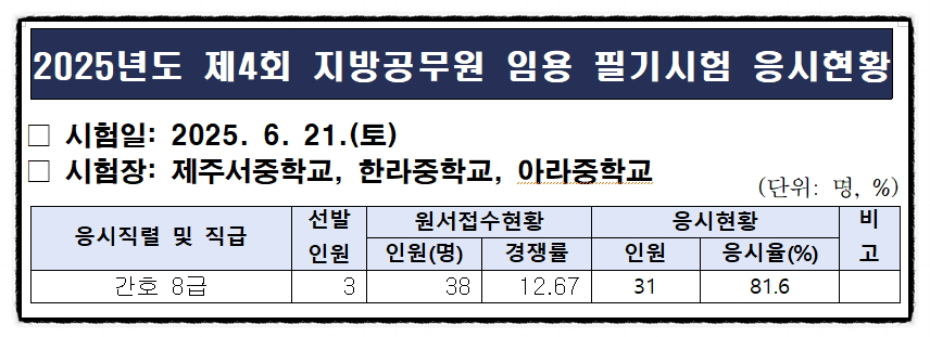 2025년 6월 21일 토요일에 시행한 제주도 간호직 공무원