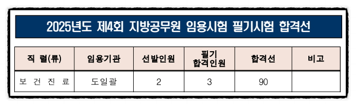 | 2025년도 울산광역시 보건진료직 공무원 최종합격자 발표 / 경쟁률, 합격선 [대방열림고시학원] (0) | 2025.08.21 |