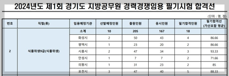 2025년 경기도 제4회 식품위생직 공무원 경력경쟁 시험의