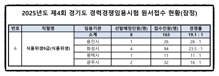 2025년도 제4회 경기도 식품위생직 공무원 원서접수 현황(잠정)/경쟁률 [대방열림고시학원]