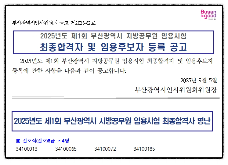 2025년도 부산광역시 간호직 공무원 최종합격자 발표 / 경쟁률, 합격선 [대방열림고시학원]