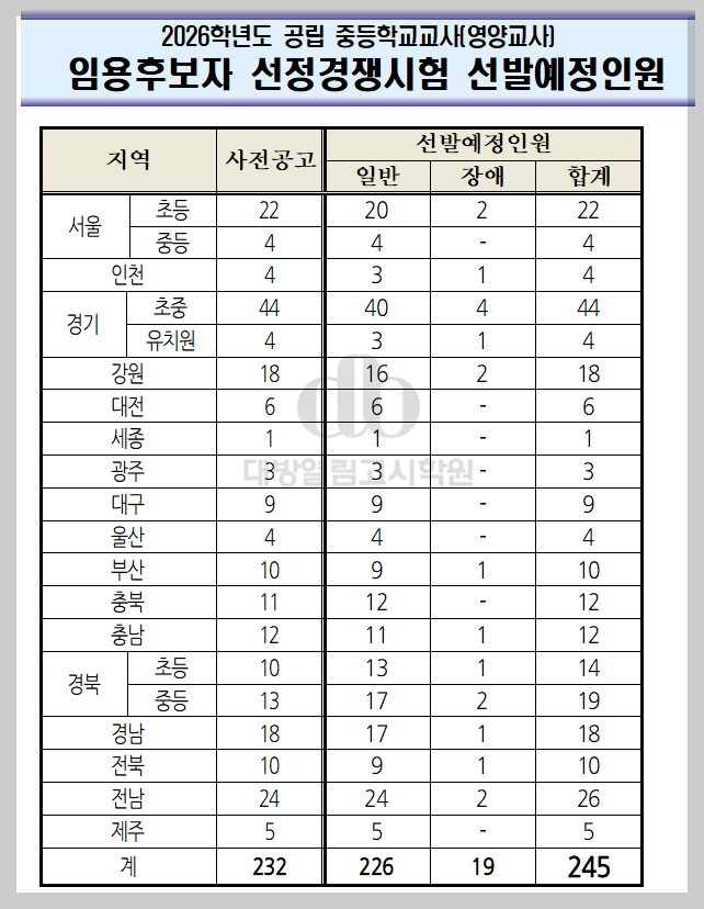 2026 영양교사 티오 (최종) [대방열림고시학원]