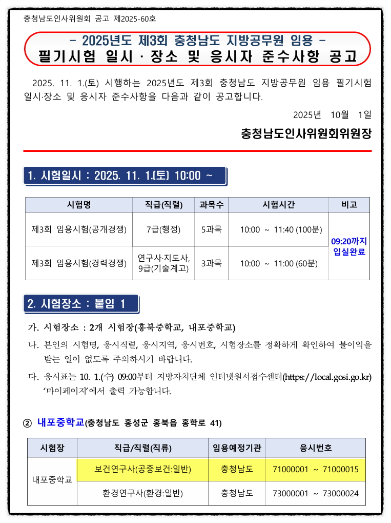 2025년 11월 1일 토요일에 시행하는 충청남도