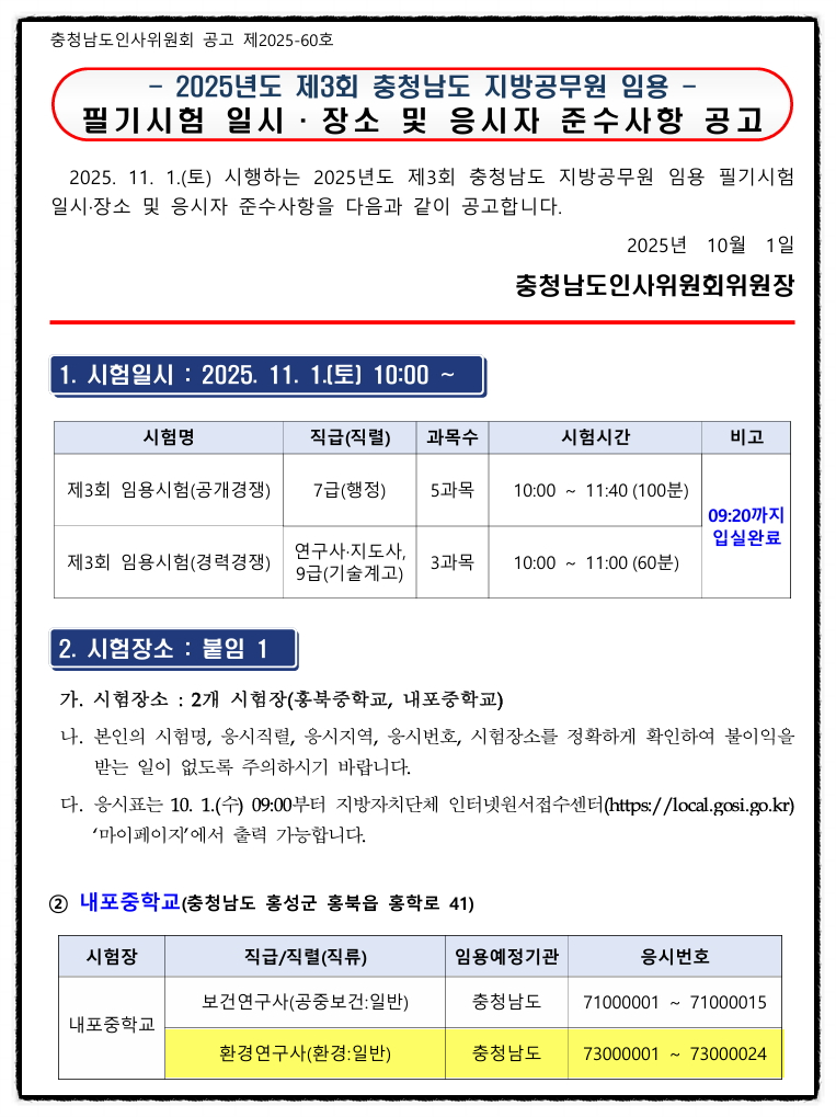 2025년 11월 1일 토요일에 시행하는 충청남도