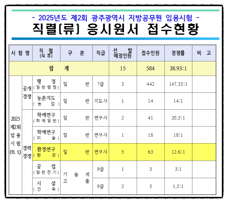 2025년 광주광역시 환경연구사 공무원 시험장소 / 경쟁률 [대방열림고시학원]