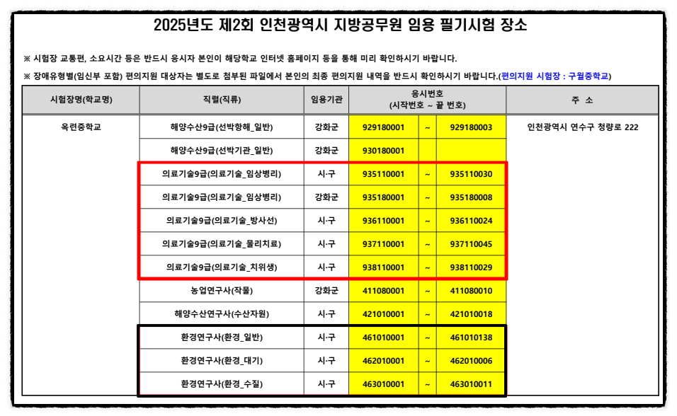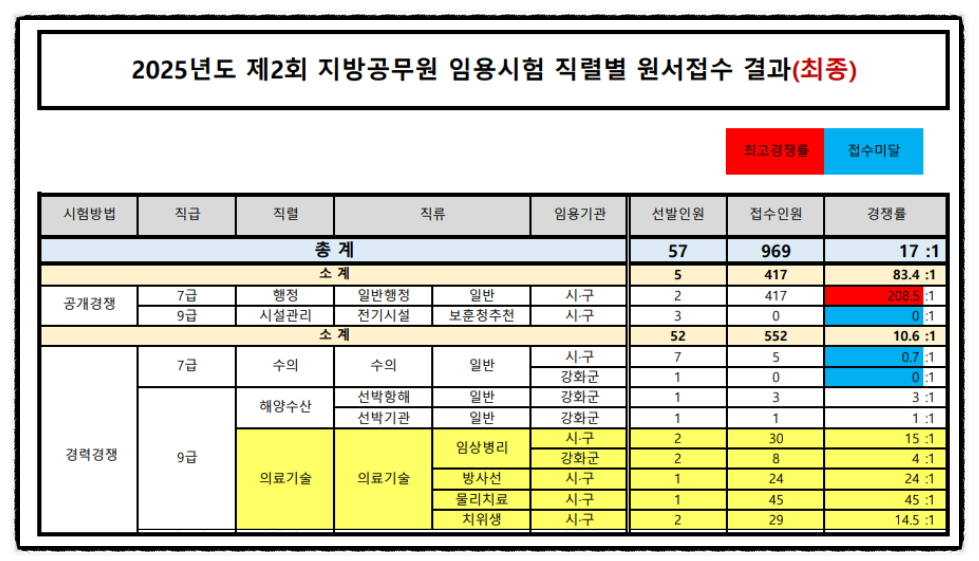 2025년 인천광역시 의료기술직 공무원 시험장소 / 경쟁률 [대방열림고시학원]
