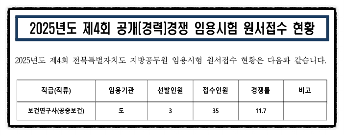 전북특별자치도 보건연구사 경력경쟁 공무원 시험의