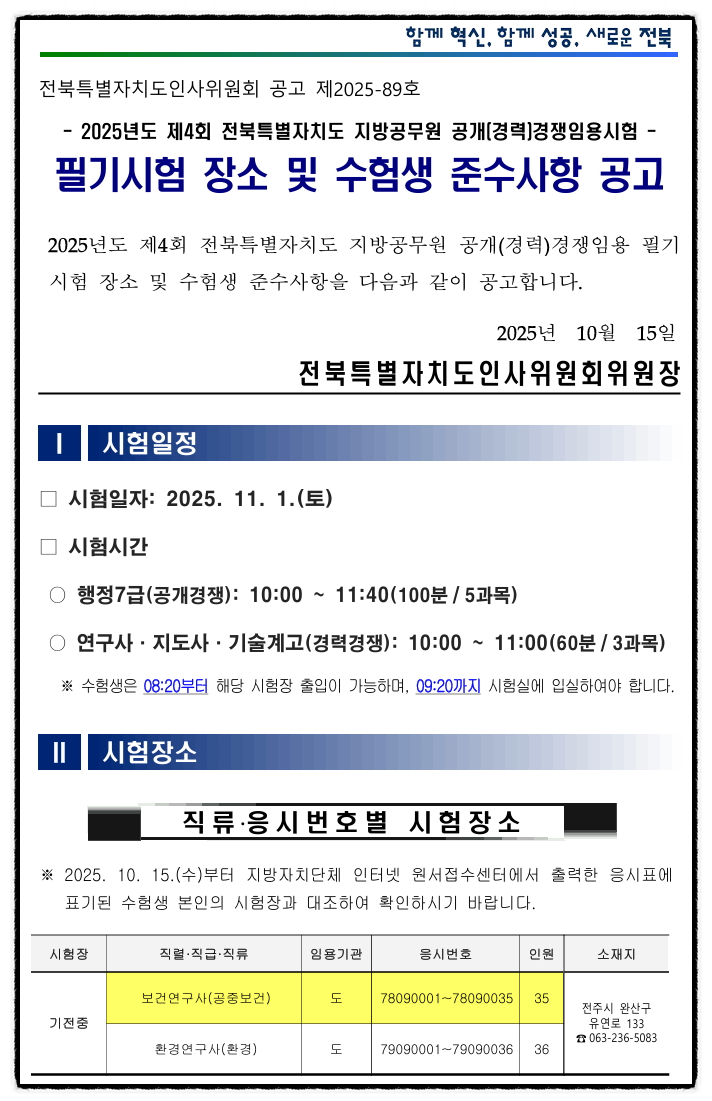 2025년 전북특별자치도 보건연구사 공무원 시험장소 / 경쟁률 [대방열림고시학원]