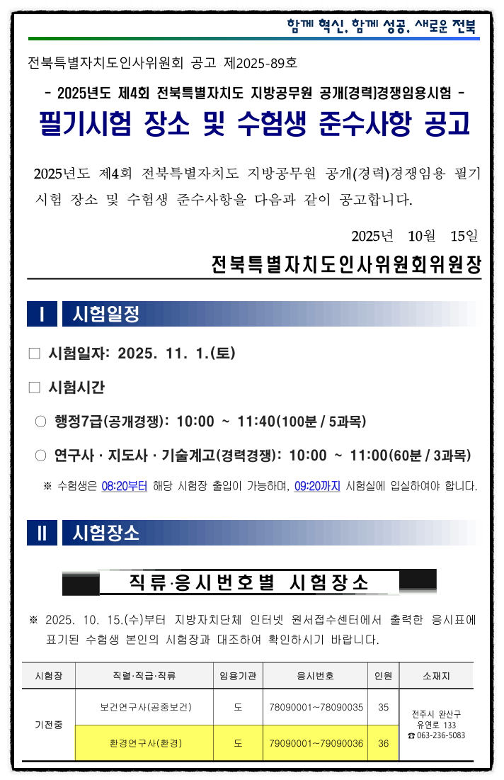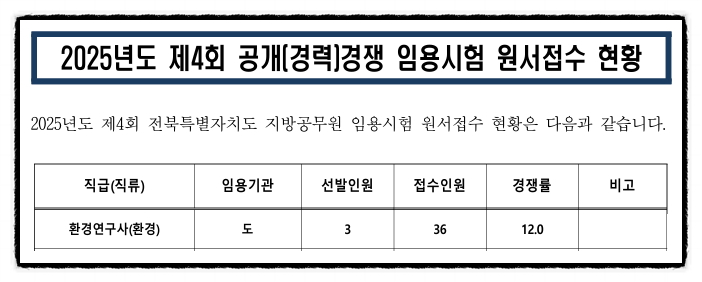 2025년 전북특별자치도 환경연구사 공무원 시험장소 / 경쟁률 [대방열림고시학원]