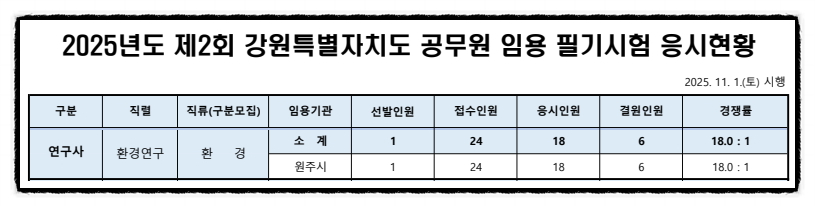 2025년도 제2회 강원특별자치도 환경연구사 공무원 필기시험 응시 현황(실경쟁률) [대방열림고시학원]