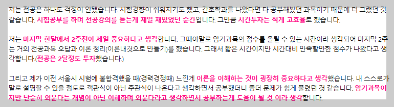 아래 합격수기는