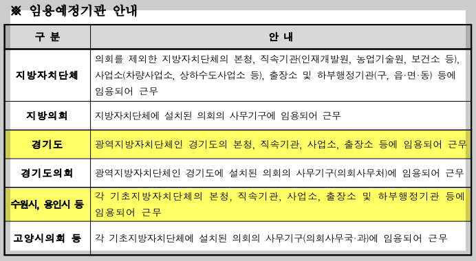 임용예정기관은 위와 같이 안내되어 있습니다.