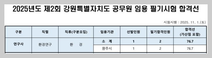 2026년도 제1회 강원특별자치도 환경연구사 공무원 원서접수 현황(경쟁률) [대방열림고시학원]