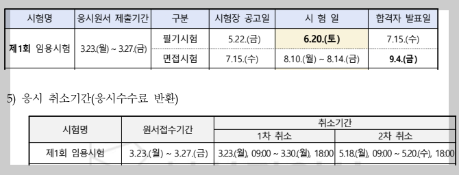 위 표에서 원서접수기간, 1차 취소기간, 시험일 3가지만 전국이 동일하며