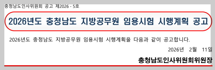 2026년도 충청남도 지방공무원 임용시험 시행계획 공고 [간호직,보건진료직,보건직,식품위생직,환경직,의료기술직,보건연구사,환경연구사] 자세한 내용은 첨부파일의 공고문을 꼭! ...